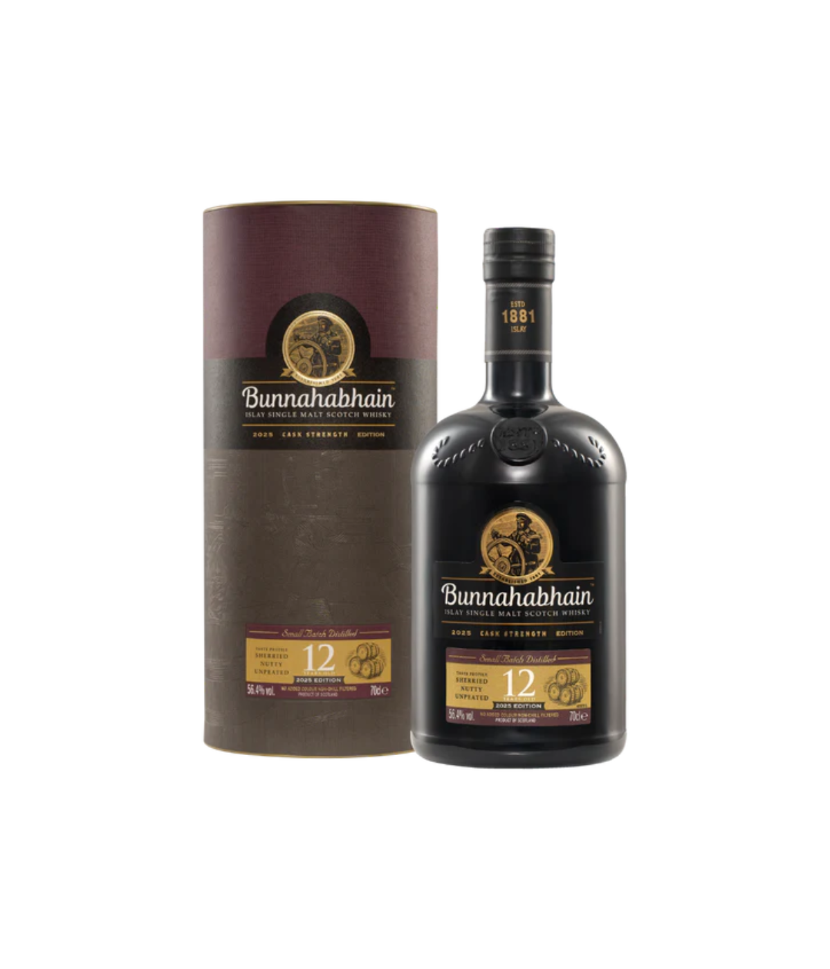 Some single malts shout. Bunnahabhain never has to. The 2025 Edition of the 12 Year Old Cask Strength is a masterclass in balance and authenticity, created from a careful combination of first, second and refill Oloroso sherry casks. Matured for 12 years on the north-eastern shores of Islay, this unpeated single malt reflects the maritime climate, clear spring water, and uncompromising spirit that define Bunnahabhain.