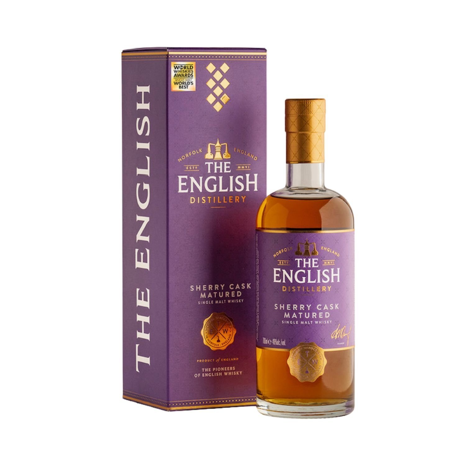 After a mere 17 years of distilling, The English Whisky Company finally have enough stock to add a sherry cask matured single cask whisky to their core range. This is a momentous step for the distillery and a big milestone as it continues to demonstrate the skill of the distillery and the depth of their maturing stock. The new Sherry Cask completes this must-have trio alongside The English Original and The English Smokey.